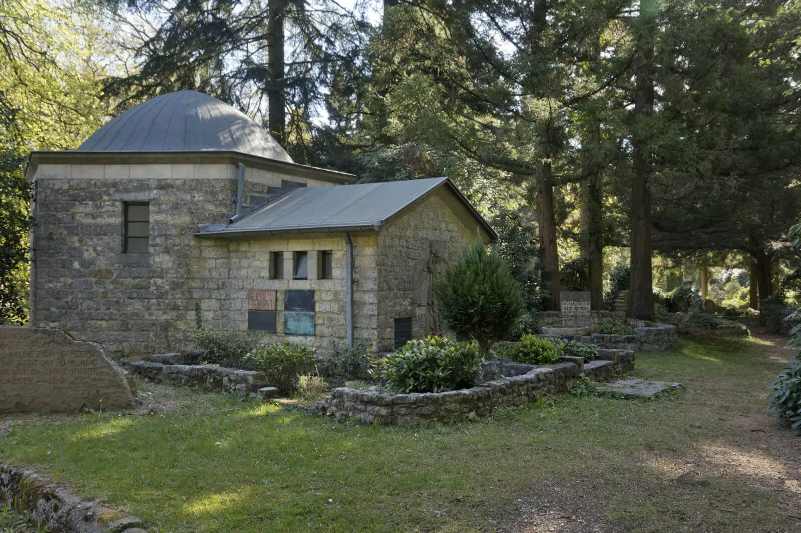 In deze sfeervolle herdenkingskapel, die tevens monument is voor alle gevallen (verzets)politiemensen in de Tweede Wereldoorlog, worden de asbussen bovengronds in nissen geplaatst, welke worden afgesloten door eenzelfde Comblanchien naamplaatjes.