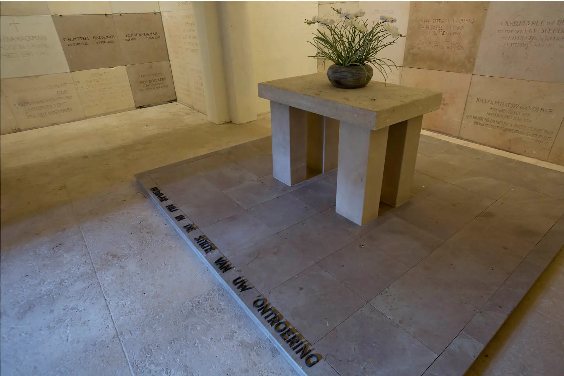 In de Calvarieberg hebben wij een crypte waarin wij keldertjes voor asbussen hebben gecreƫerd. Deze keldertjes worden afgesloten door identieke natuurstenen naamplaten.